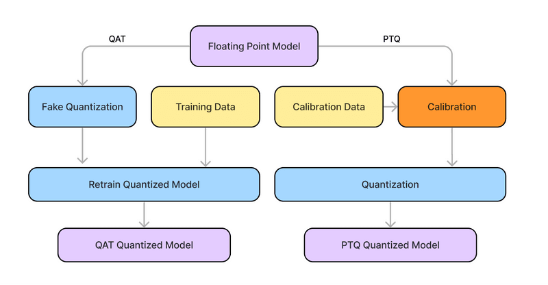 Simple precision reduction applied after training (no retraining). Fast to implement. Can reduce quality if you push bit-width too low or skip careful calibration.