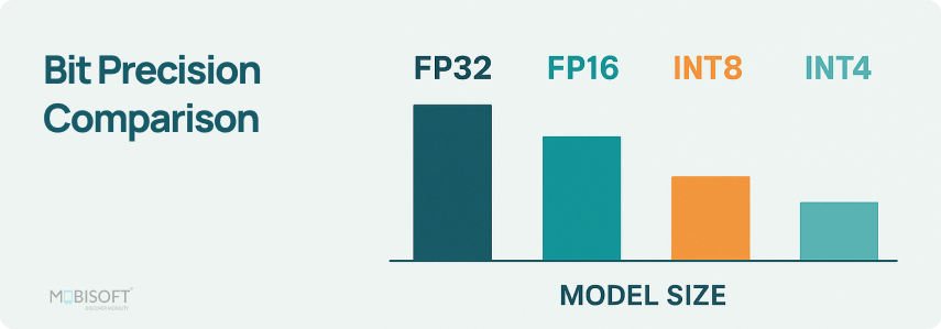 INT8 quantization maps floating-point weights to 8-bit integers. It cuts model size by 50% versus FP16 and maintains strong compatibility with modern hardware acceleration.