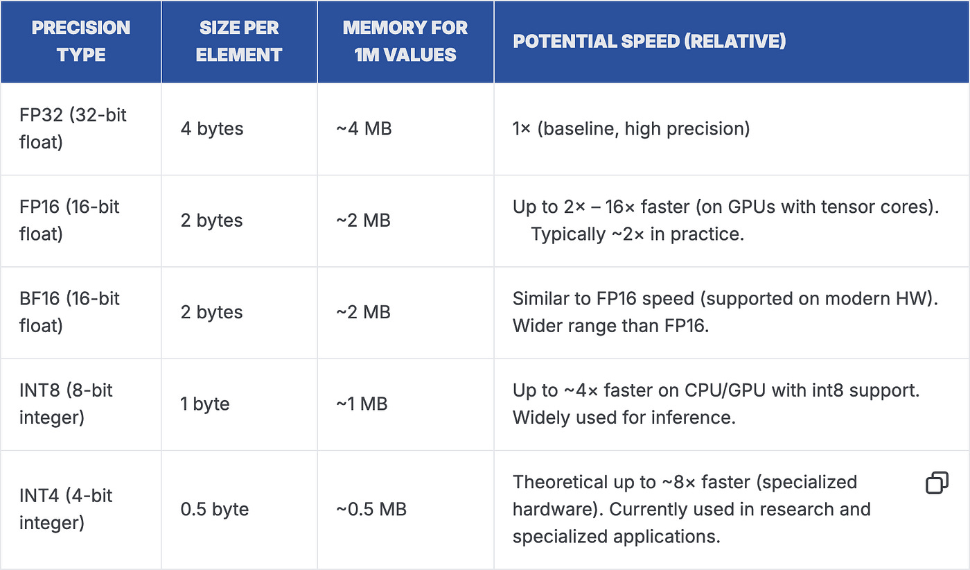 Each sits at a different point on the memory–accuracy–speed trade-off curve. Quantization can significantly reduce weight memory and sometimes improve throughput, but the best choice depends on your hardware and how sensitive your task is to small quality changes. This guide helps you pick the right method.